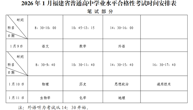 2026年1月福建普通高中学业水平合格性考试报名时间为2025年11月10日至15日,逾期不予补报。以下是具体要求: